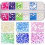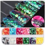 Mermaid iridescent round disc glitter—sparkly color in iridescent lemon, orange, pink, rose, red, blue, green, AB, silver, etc, 12 colors in total, color shift, shining under light. It’s good for nail art, gift bags diy, resin art, glass work.