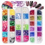 Iridescent Nail Glitter Flakes Holographic Moon Alphabet Nail Sequins AB Chunky Mermaid Nail Art Glitters Flowers Butterfly Water Stickers Decals for Nail Décor, Festival, Slime & Resin Art