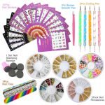 Nail Art Tools Decoration Manicure Pedicure Tool Set Kit 16PCS Nail Stickers,5 Boxes Nail Beads Rhinestones Stone Gold Metal Studs,5 Nail File Sticks,5 Nail Dotting Pen,Nail Stamping Sponge Pusher